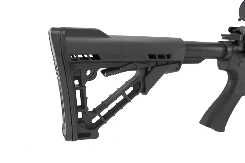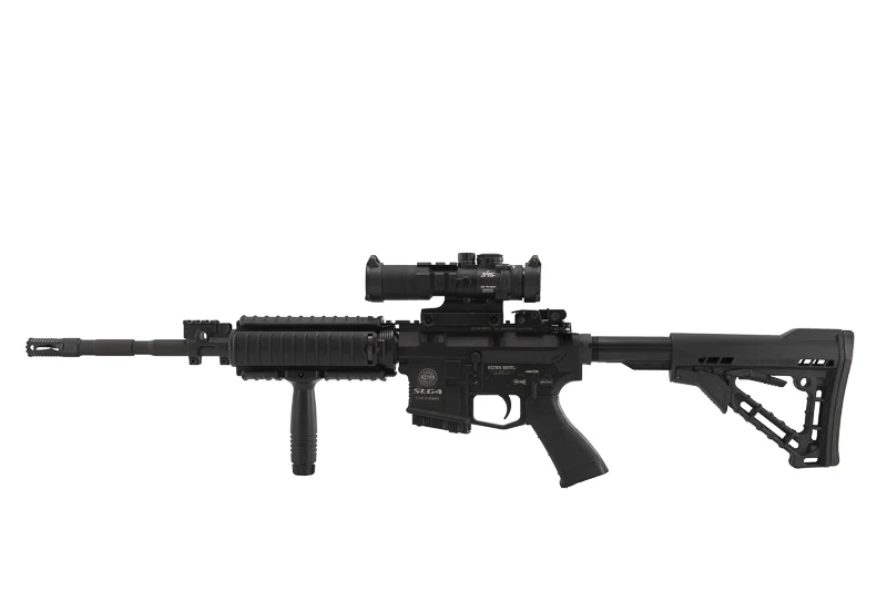 Questa versione è equipaggiata con ottica dedicata e mire pieghevoli, per un utilizzo immediato sia al poligono che nelle competizioni sportive. I receivers in alluminio billet 7075-T6 garantiscono resistenza e stabilità, mentre il sistema a presa di gas diretta assicura un funzionamento fluido e costante.