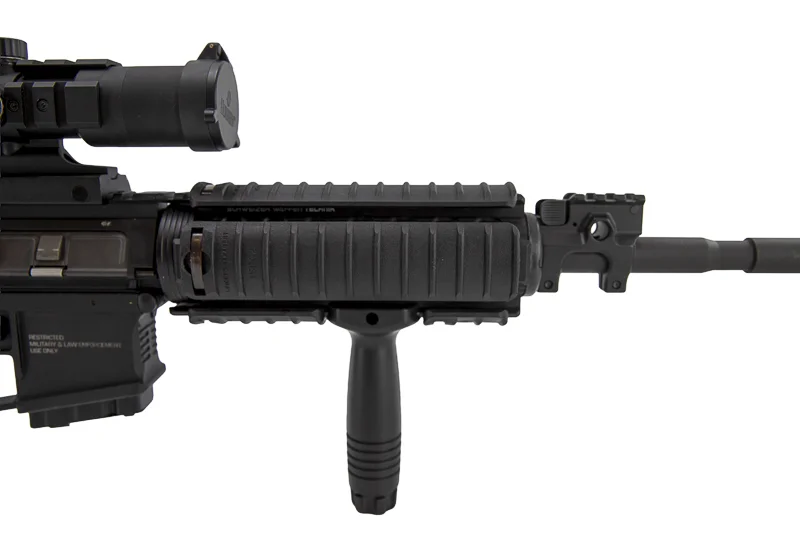 - Azione: Gas-operated (configurazioni con gas piston o direct impingement a seconda della versione)