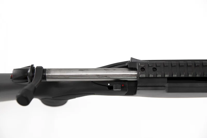 - Azione / Meccanica: Azione B-14 con due tenoni (two-lug), push-feed; estrattore a piastra scorrevole