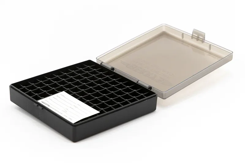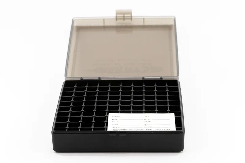 Contenitore porta‑colpi da 100 unità con design flip‑top monocomando: robusto, impilabile, made in USA, garantito a vita.