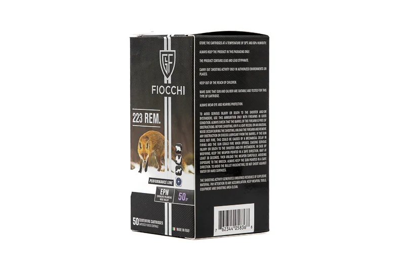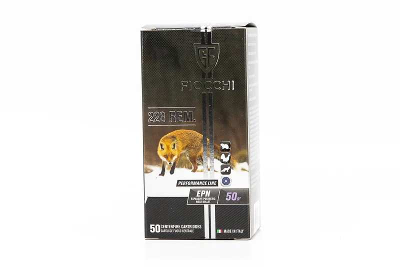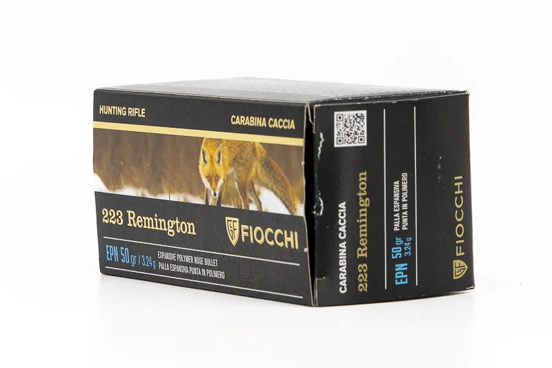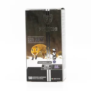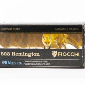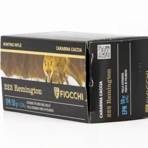 Cartucce Fiocchi calibro .223 Remington, disponibili in versione standard da 62 gr o espansiva da 50 gr EPN. Ideali per caccia leggera e tiro preciso.