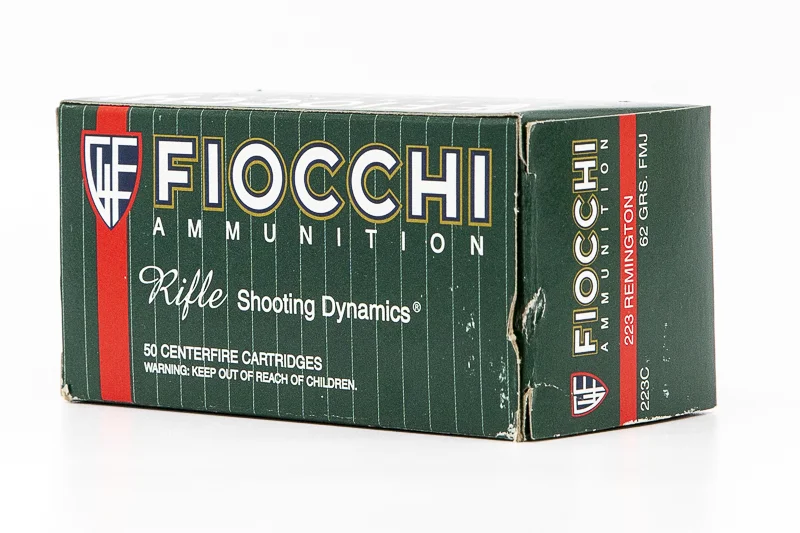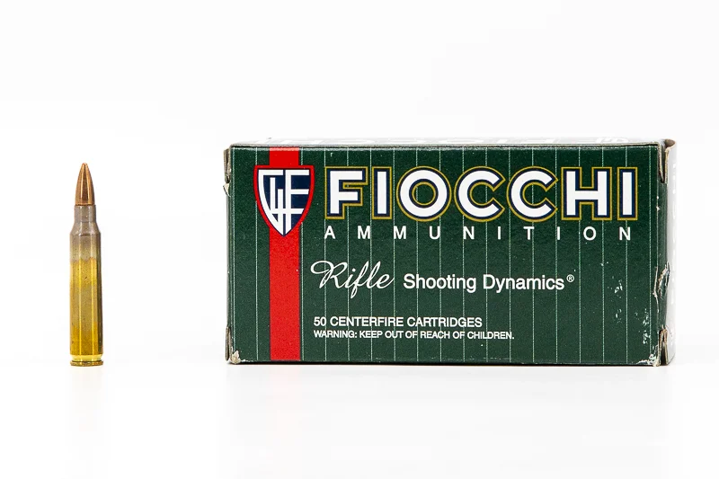 Cartucce Fiocchi calibro .223 Remington, disponibili in versione standard da 62 gr o espansiva da 50 gr EPN. Ideali per caccia leggera e tiro preciso.