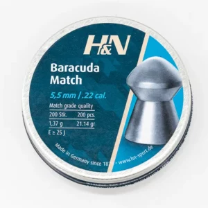 Gli H&N Barracuda Match calibro 5.5 mm sono progettati per prestazioni ottimali nel tiro di precisione. Il peso elevato e la forma aerodinamica li rendono ideali per tiri su lunghe distanze, mantenendo una traiettoria stabile e costante. Ogni lotto è selezionato con tolleranze strettissime per garantire omogeneità e prestazioni costanti, rendendoli la scelta perfetta per i tiratori più esigenti.