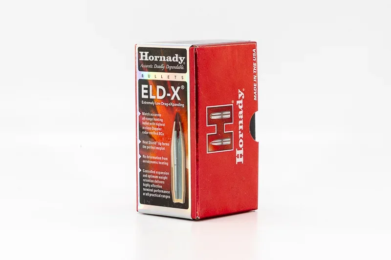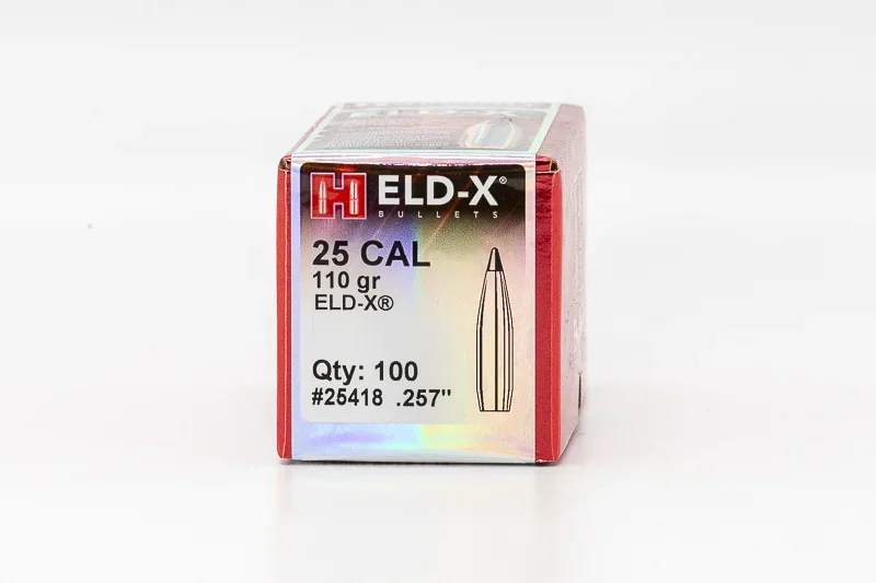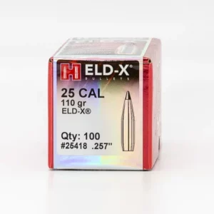 Hornady ELD-X 110gr calibro .25: ogive da caccia ad alta precisione con espansione controllata, ideali per tiri lunghi e prestazioni balistiche elevate.