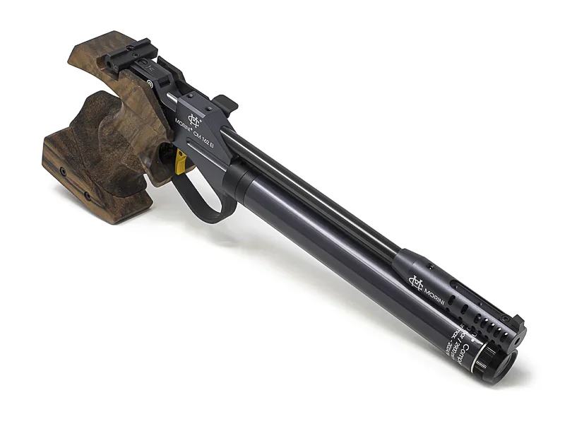 La Morini CM162EI Titanium è una 10m air pistol di altissimo livello progettata per la massima performance. Con finitura in titanio sabbiato antiriflesso e scatto elettronico estremamente regolare, promette precisione e controllo superiore in ogni condizione di gara.