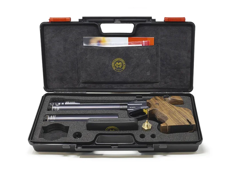 Questa iconica pistola è stata la prima pistola ad aria compressa al mondo dotata di bombole intercambiabili da 200 bar e di un sistema di scatto elettronico su cuscinetto a sfere.