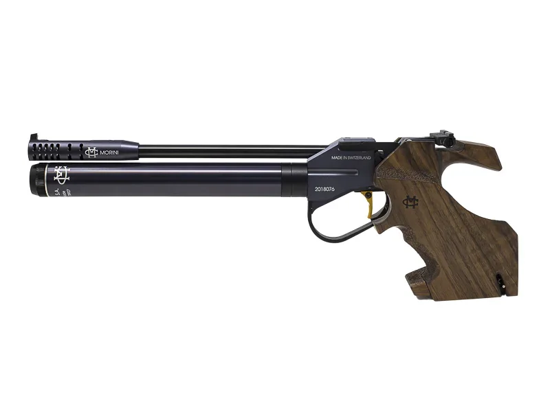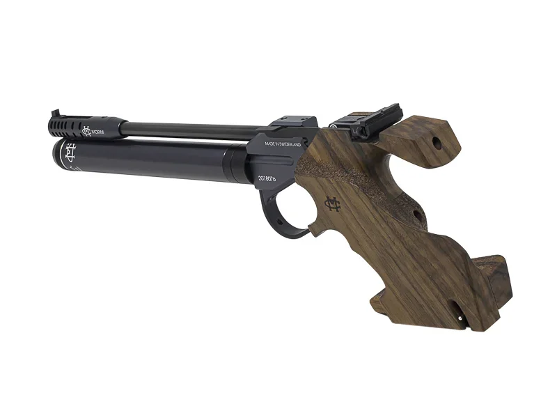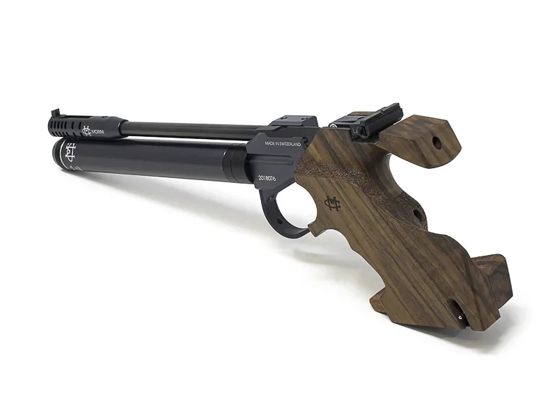 10m air pistol con scatto elettronico fluido e manometro digitale integrato, bombole da 200 bar, impugnatura in noce e finitura titanio sabbiato antiriflesso. La CM162EI Titanium unisce eleganza svizzera e prestazioni da podio per i tiratori più esigenti.