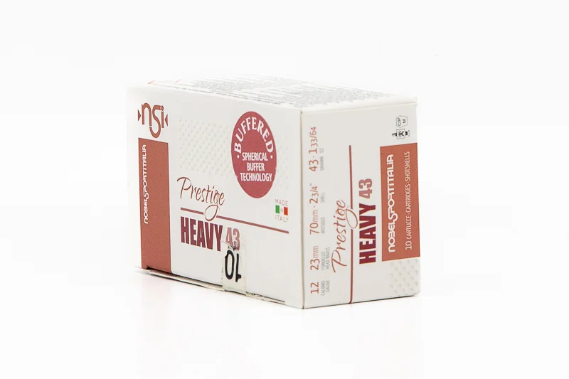 Le cartucce NOBEL Sport PRESTIGE HEAVY 43 rappresentano il massimo della potenza per chi cerca prestazioni elevate nella caccia impegnativa. Grazie a una carica pesante da 43 grammi e alla qualità dei componenti Nobel Sport, sono pensate per affrontare selvaggina impegnativa e situazioni dove servono gittata, penetrazione e rosata compatta.