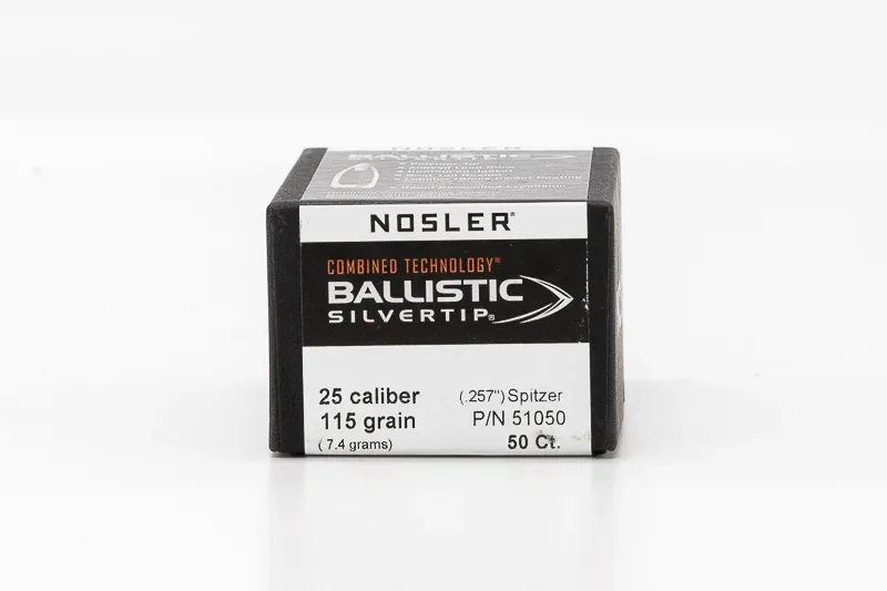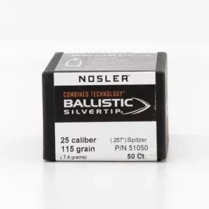 Nosler Ballistic Silver Tip 115gr in calibro .25: precisione e potere d’arresto per tiri selettivi efficaci.