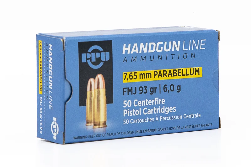 Munizioni PPU 7,65 Parabellum: precisione costante per il tiro sportivo e l’addestramento.