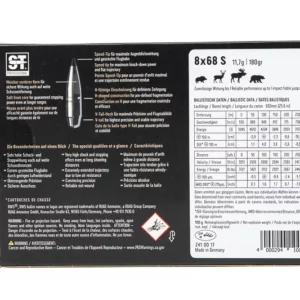 La produzione RWS, sinonimo di qualità e affidabilità, assicura costanza balistica colpo su colpo, offrendo al cacciatore la certezza di prestazioni elevate in ogni condizione. L’8×68 S rimane così un calibro di riferimento per chi desidera unire tradizione, potenza e precisione nella caccia di alto livello.