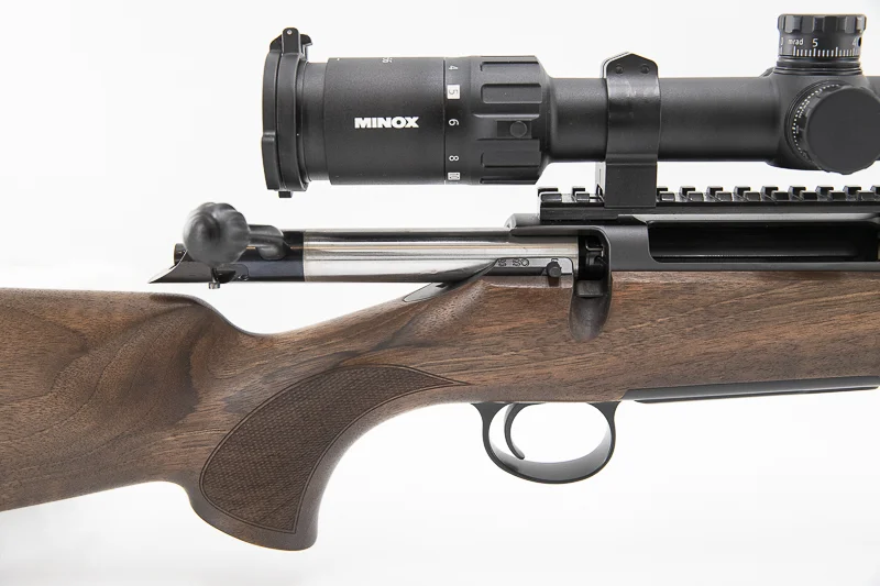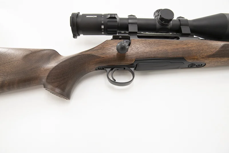 Carabina bolt-action SAUER 100XT Wood camerata in .6,5 PRC. Canna filettata con predisposizione per ottica, calcio in legno ergonomico, slitta Rem-700 e ottica Minox già montata. Precisione sub-MOA garantita.
