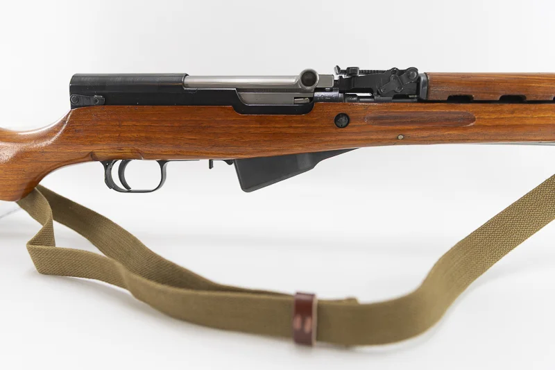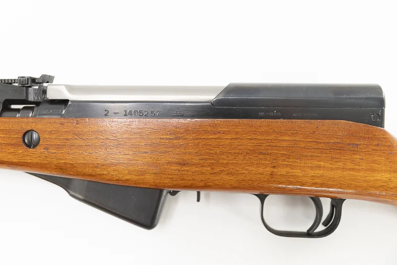 Carabina semiautomatica SKS Type 56 prodotta in Cina (Norinco), calibro 7,62×39 mm. Versione usata, con caricatore fisso da 10 colpi e calciatura in legno. Storica arma militare, oggi apprezzata da collezionisti e appassionati di tiro storico.