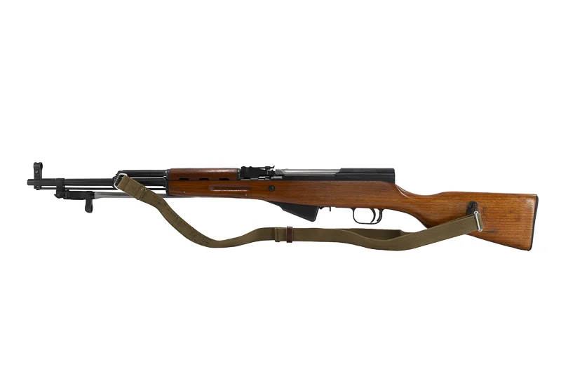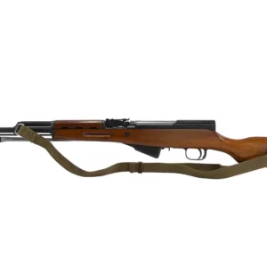 Lo SKS Type 56 è la versione cinese del celebre fucile semiautomatico progettato da Sergej Simonov nel 1945. Camerato in 7,62×39 mm, utilizza un caricatore fisso da 10 colpi alimentato tramite clip o caricamento manuale.