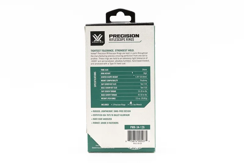 Gli anelli Vortex da 34 mm per ottica carabina offrono un sistema di montaggio solido e affidabile per ottiche di alta qualità.