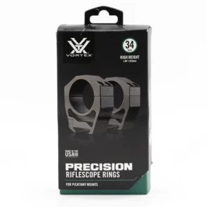 Anelli Vortex da 34 mm per ottica carabina: montaggio robusto e preciso su basi Picatinny o Weaver, ideali per il tiro sportivo e di precisione.
